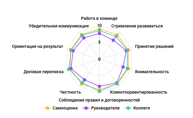 | Подчиненные | Сотрудники, находящиеся ниже по уровню | Качество управления, поддержка, мотивация |