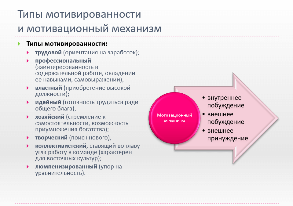 - Мотивация — стимулирование к выполнению задач и достижению целей.